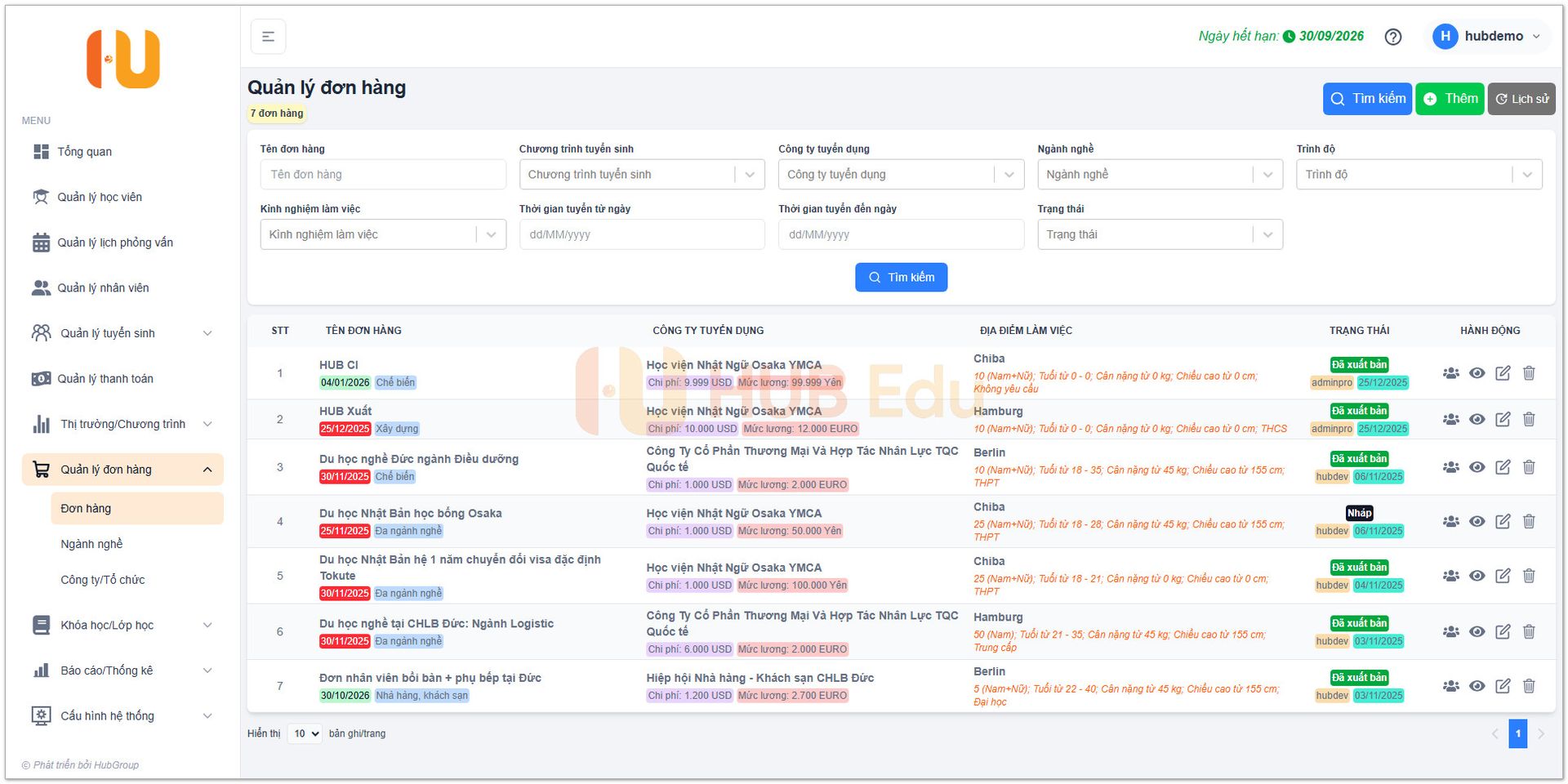 - Quản lý toàn bộ đơn hàng XKLĐ, chương trình du học